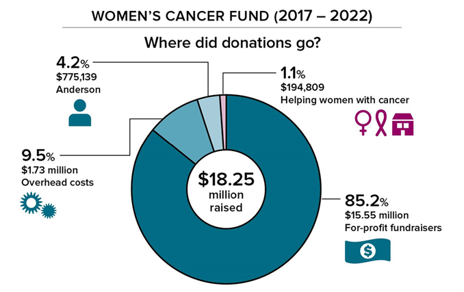According to the allegations in the legal complaint, the charity and its operators knew that most donated funds did not actually help women with cancer and patients’ families. Instead of providing financial assistance for utility bills, rent and food, donor contributions were allegedly used to pay professional fundraisers and Anderson’s salary.